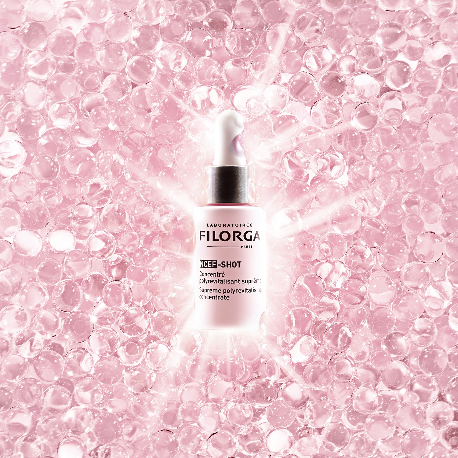 Formuła o najwyższym stężeniu NCEF, unikalnego kompleksu opracowanego przez Laboratorium FILORGA, który zawiera składniki przywracające witalność [witaminy, aminokwasy, minerały, koenzymy, antyoksydant].